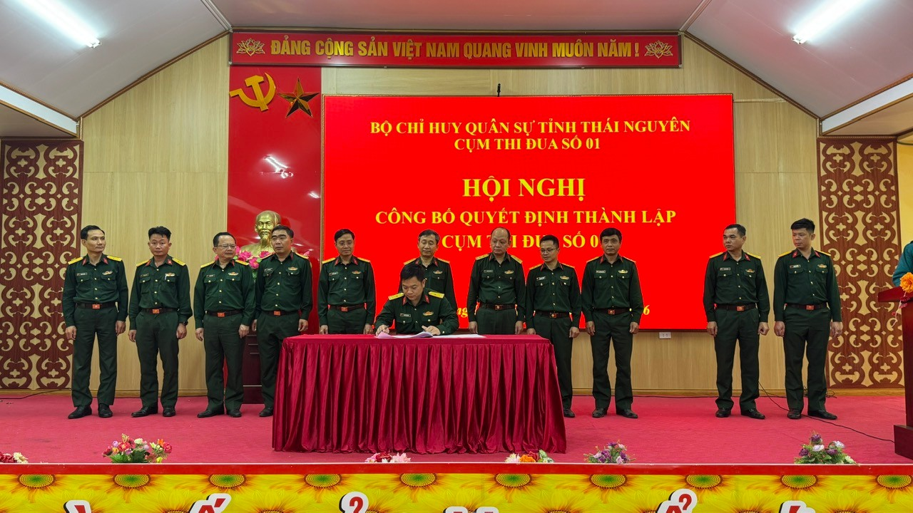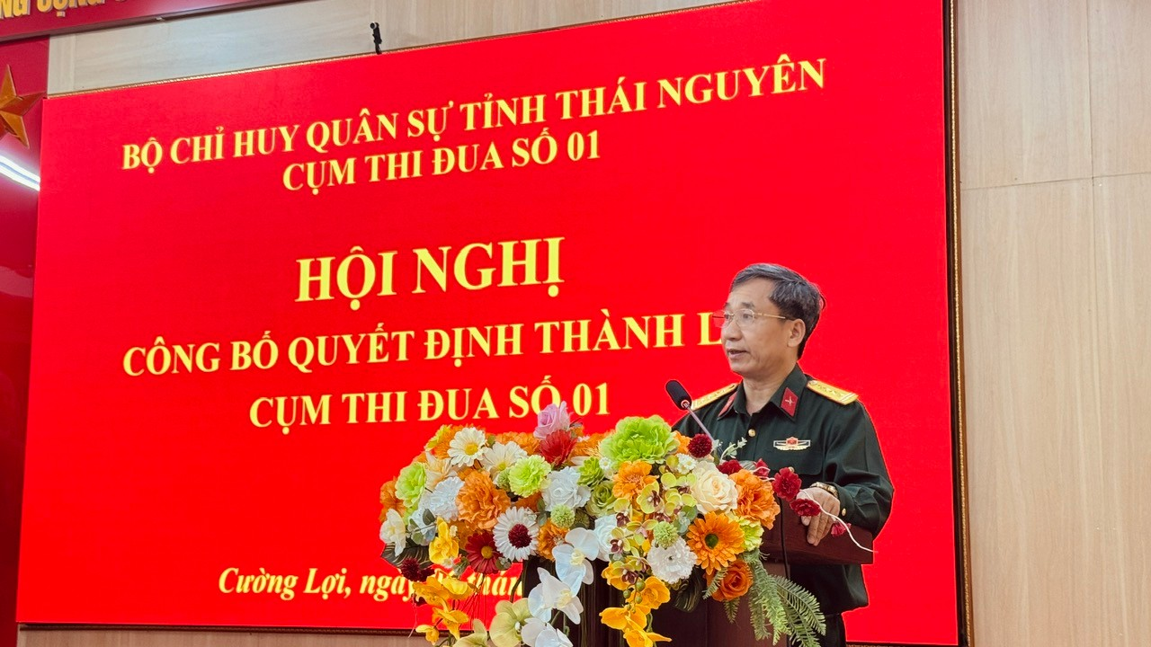Chiều 6-4, tại Nhà văn hóa xã Cường Lợi, tỉnh Thái Nguyên, Cụm thi đua số 01 thuộc Bộ Chỉ huy Quân sự (CHQS) tỉnh Thái Nguyên tổ chức Hội nghị công bố quyết định thành lập và triển khai nhiệm vụ hoạt động năm 2026.